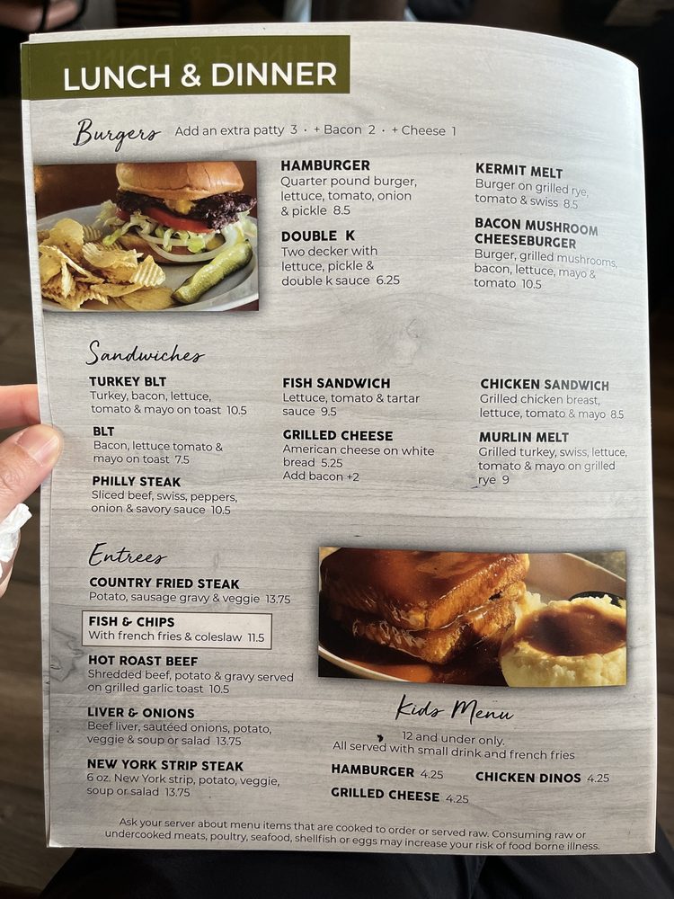 Kermit’s Family Restaurant in Bowling Green, OH offers a cozy, small-town diner ambiance with a wide range of American breakfast and brunch options. The menu includes popular items like Philly Steak Sandwiches, Kermit Melts, Cheeseburgers, Turkey Clubs, and more. With options for takeout, delivery, and catering, this restaurant caters to various needs. Customers praise the friendly service, delicious food, and comfortable atmosphere. The new owner, Katie Ladd, along with her dedicated staff, keeps the restaurant clean and welcoming. Whether you're craving a classic Bacon Mushroom Cheeseburger or a hearty country fried steak with home fries, Kermit's Family Restaurant is a beloved breakfast spot in the Bowling Green area. Sit back, relax, and enjoy a meal with your family at this charming establishment on Main Street.